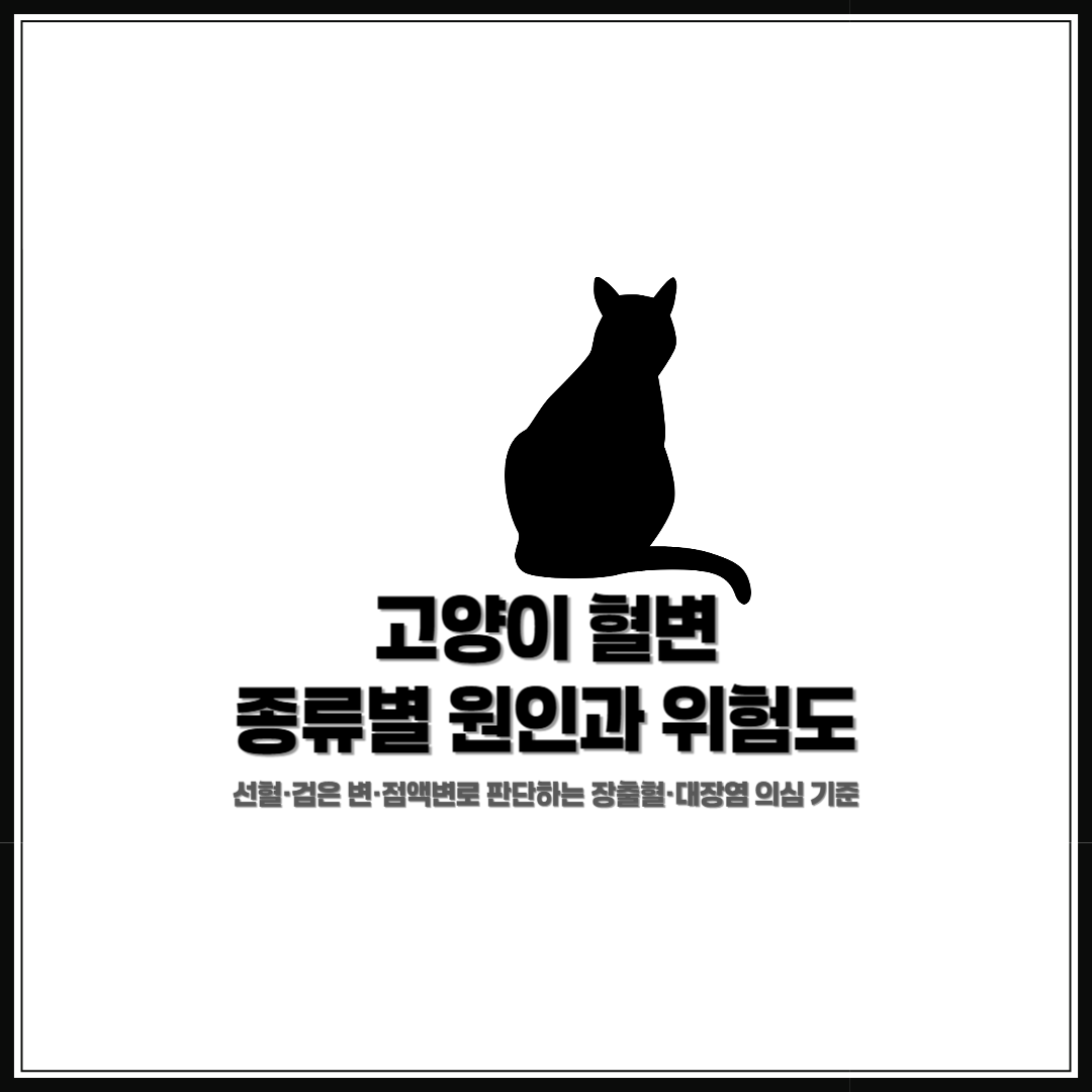 고양이 혈변은 단순 장 문제로 보기 어려운 경우가 많으며, 출혈 위치와 원인에 따라 위험도가 달라집니다. 선혈, 검은 변, 점액변은 각각 다른 상황을 의미하고, 대응 속도도 달라져야 합니다. 이 글에서는 고양이 혈변 종류별 원인과 위험도를 기준으로 병원 진료가 필요한 시점을 정리합니다.